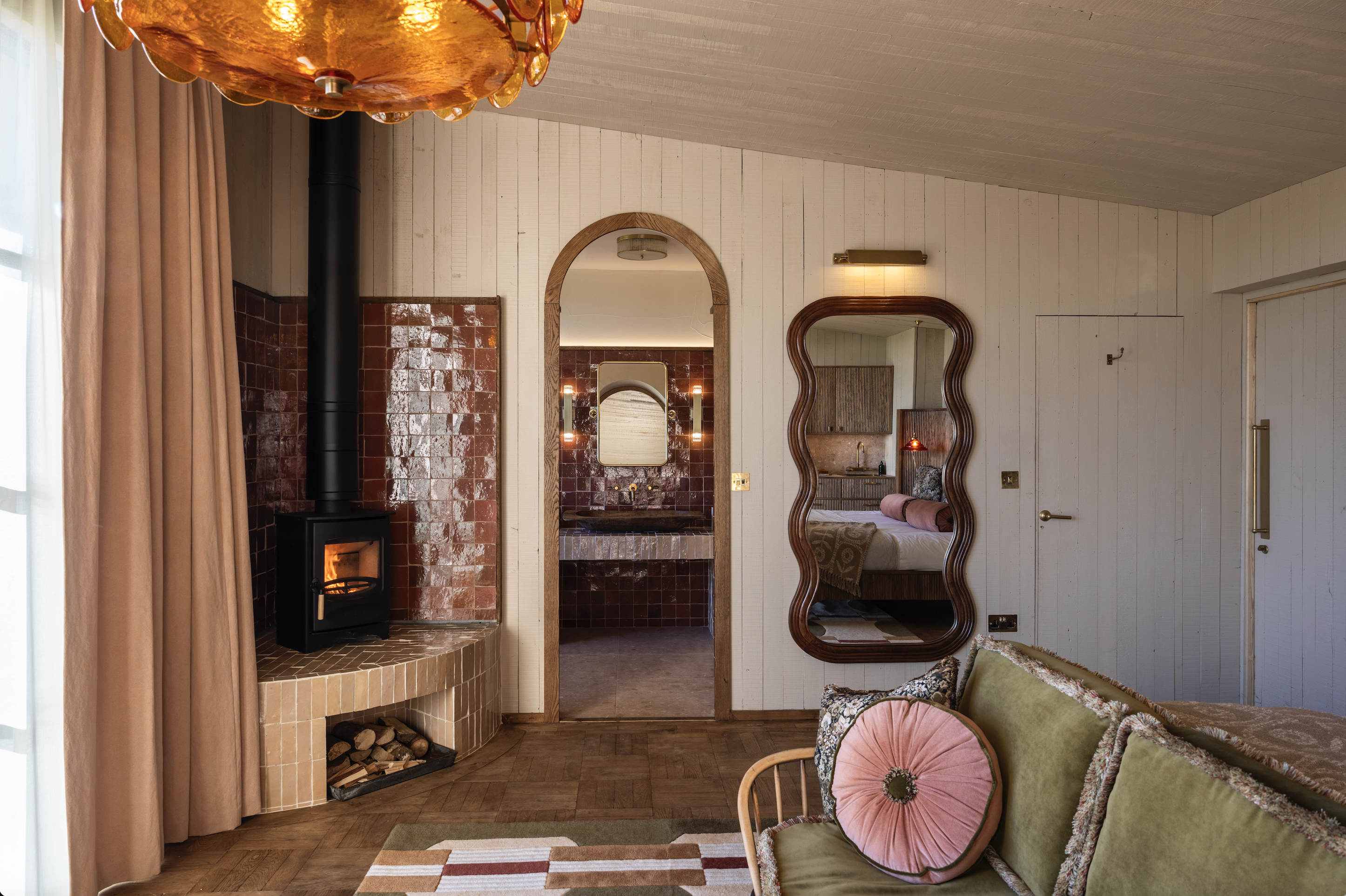 Expect rustic decadence with handmade soft furnishings and artisan high-end touches: Francone Bespoke Taps, tiles by Bert & May and Artisan of Devizes, bespoke Ercol sofas, emperor-sized beds with organic Naturalmat mattresses, log burners, walk-in rainfall showers, sliding floor-to-ceiling glass doors and, best of all, stunning brass William Holland hot tubs (with jets and bubbles).
